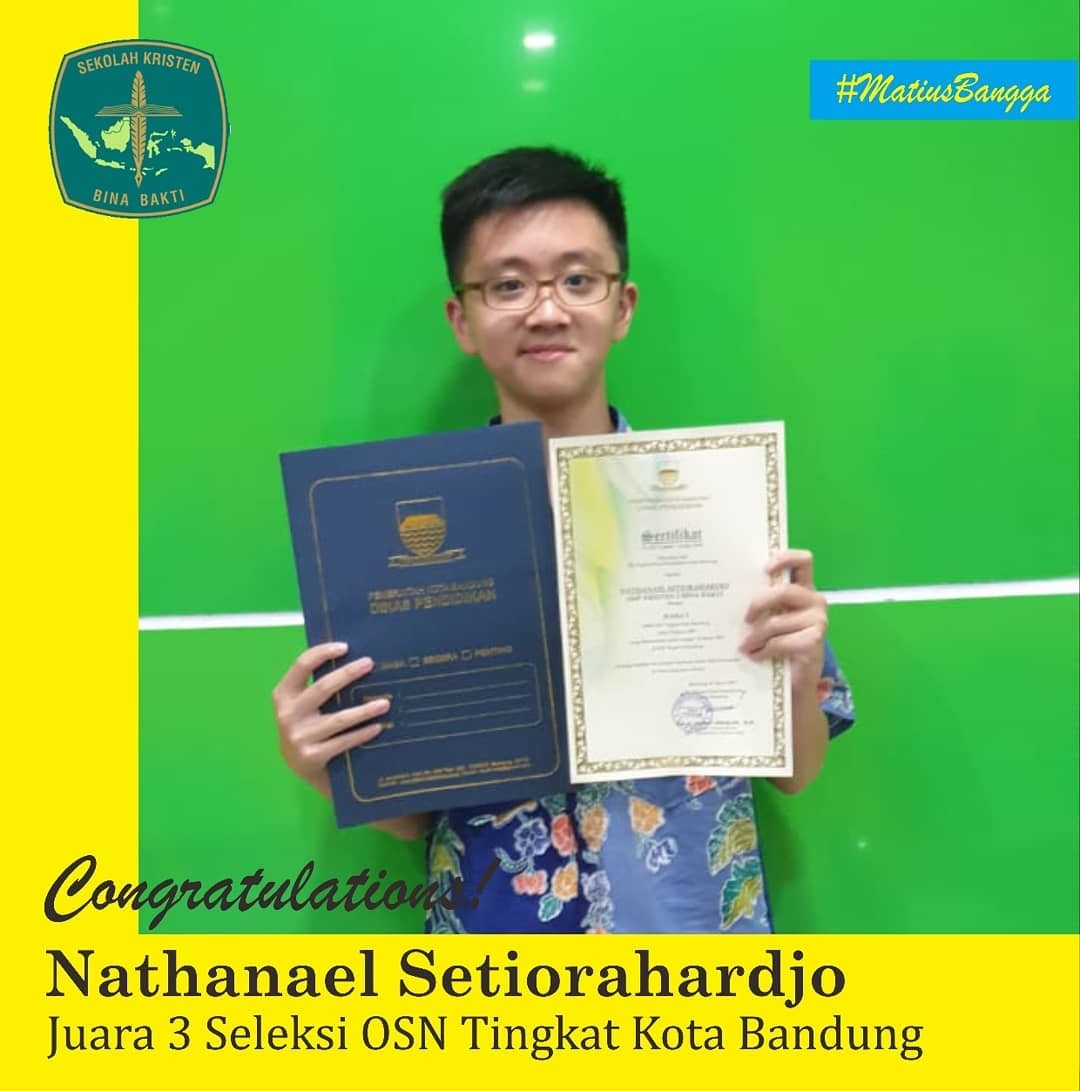 Selamat kepada Nathanael Setiorahardjo sebagai Juara 3 Seleksi OSN Tingkat Kota Bandung